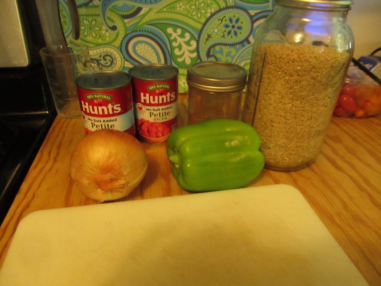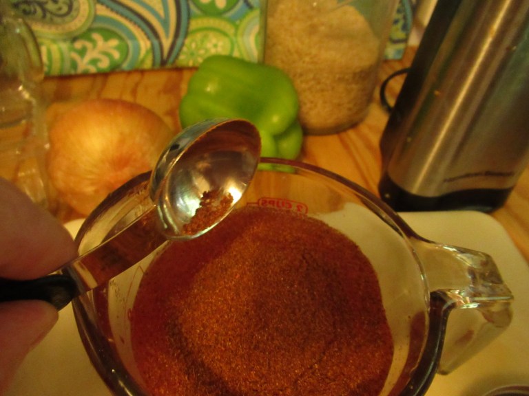I than add water to the measuring cup, using the juice from the tomatoes as part of the water in the recipe. I always pour water first into the cans also and then pour that into the measuring cup before I finish filling it with water, just to get the most tomato juice I can. I add a total of 6 cups of water to my 3 cups of brown rice. I add one heaping tablespoon of my homemade taco seasoning to one of the cups of water, usually the first tomato juice one and mix it well with a wisk. I use very little sodium so that is why I can call the recipe low sodium.