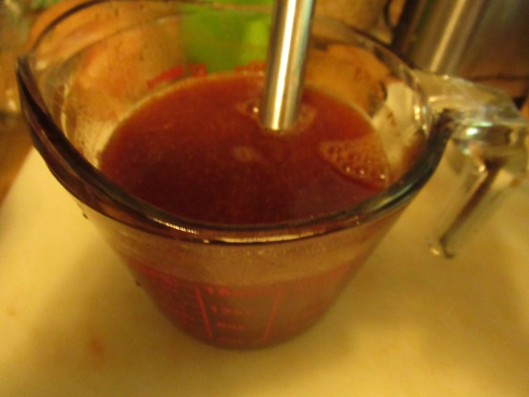 I add water to the tomato juice to make my first two cups, then I add a heaping tablespoon of taco seasoning and mix it well with a wisk. You can add more or less to taste