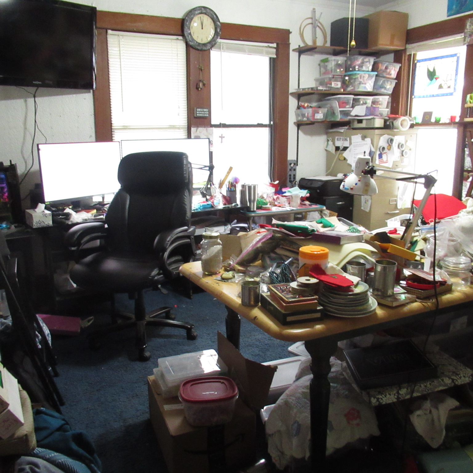 Like the studio above, the resell room is stuffed full of both supplies and things to sell. I have decided that many things in this room will have to go to a yard sale and will not be sellable online any longer. A new app called whatnot has given influencers a way to sell a lot of stuff in live auctions, mostly very cheap and those items just do not sell well on Ebay any more. I do not have a following that would allow me to do whatnot successfully , nor do I want to sell a hundred things in one night live, even if I could, so about half my items are no longer viable on Ebay so I can get back all my money and even some profit at yard sales. So, just have to find a place to store the stuff if I pack it up, that is the problem. We have a fairly new shed that was supposed to be my resell shed and we decided we would put yard sale stuff in it and then once we had the sales it would be a resale room.